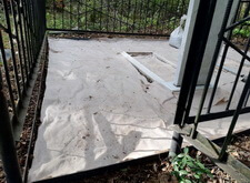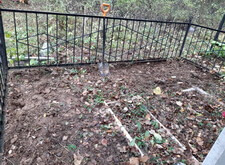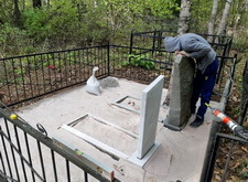 Когда подготовительный этап был завершён, мы засыпали крошку. Окончательный вариант представлен на приведённых ниже фотографиях. Место захоронения смотрится опрятно и красиво, однако осенью, когда начнёт опадать листва, весь мусор осядет на крошке и вычистить его будет практически невозможно.